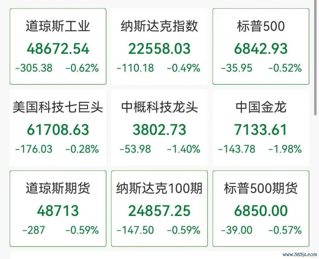 中概股普跌,纳斯达克中国金龙指数跌2.28%,阿特斯太阳能跌超7%,文远知行跌超6%,爱奇艺、美团、小米跌约4%,阿里巴巴、京东、百度等均有不同幅度下跌,比亚迪逆势上涨5%。