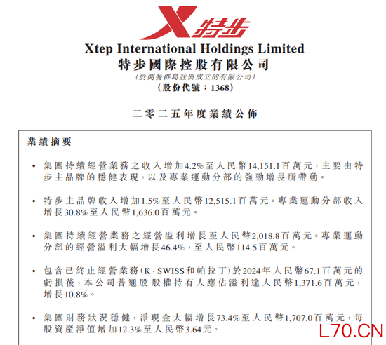 特步国际指出,2025年的业务收入增长,主要由特步主品牌的稳健表现,以及“专业运动分部的强劲增长”所带动。