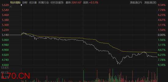 截至收盘,特步国际报4.78港元/股,跌幅7%,总市值约134亿港元。