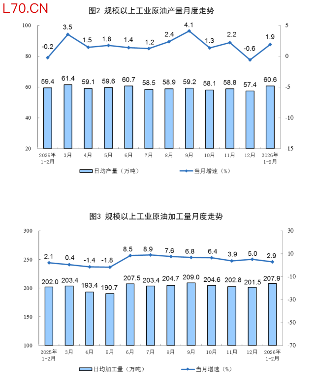 国家统计局:1—2月份,规上工业原油产量同比增长1.9%