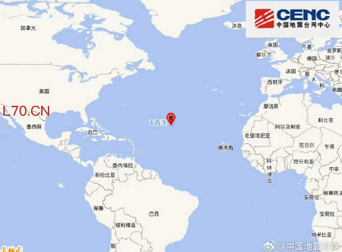 中大西洋海岭北部发生6.7级地震 震源深度10千米