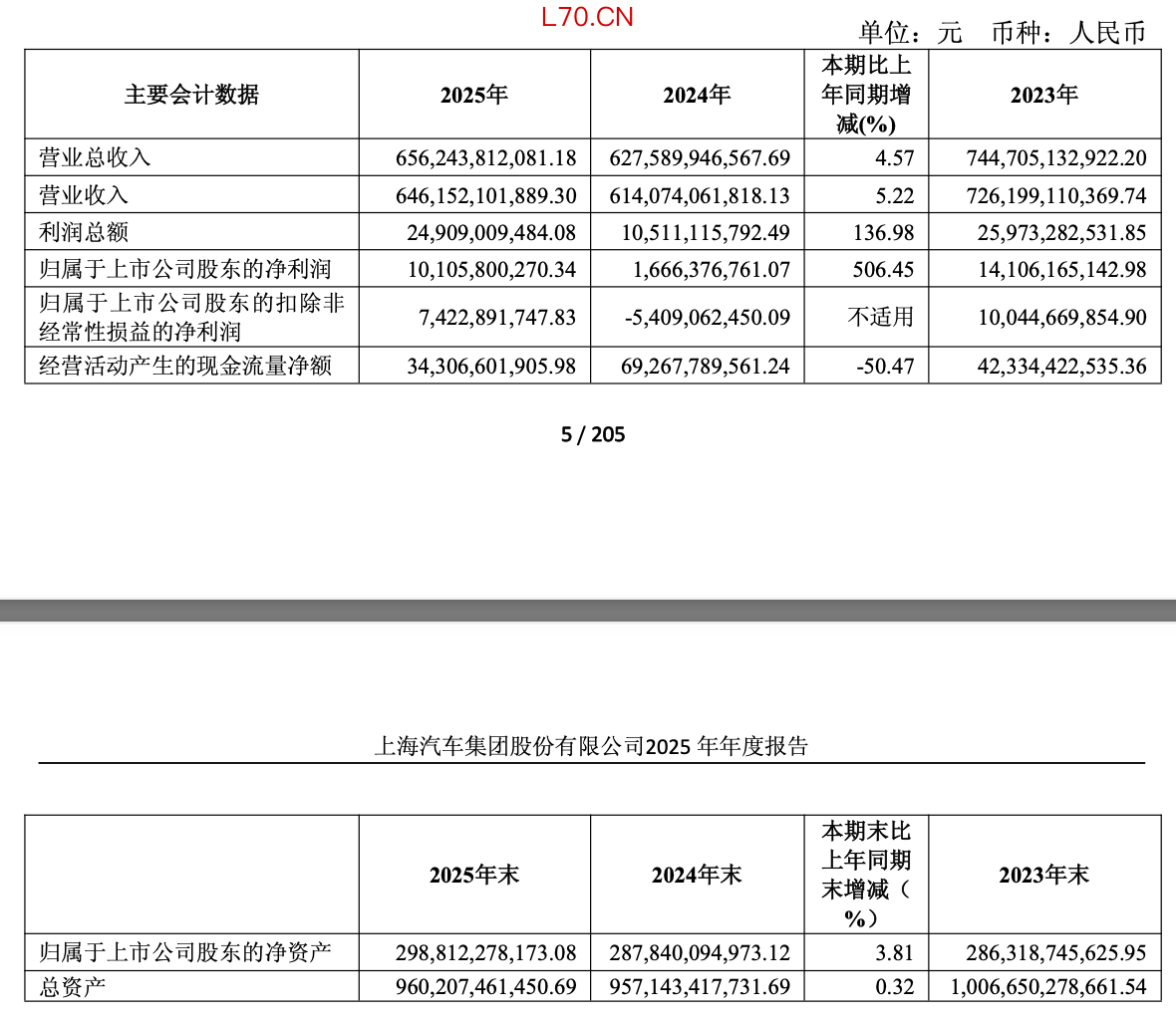 昨天(4月2日),上汽集团发布2025年年度报告。财报数据显示,2025年上汽集团营业总收入达到6562.44亿元,同比增长4.57%;归属于上市公司股东的净利润更是飙升506.45%,达到101.06亿元。从数字上看,这是一次惊人的“V型”反转。