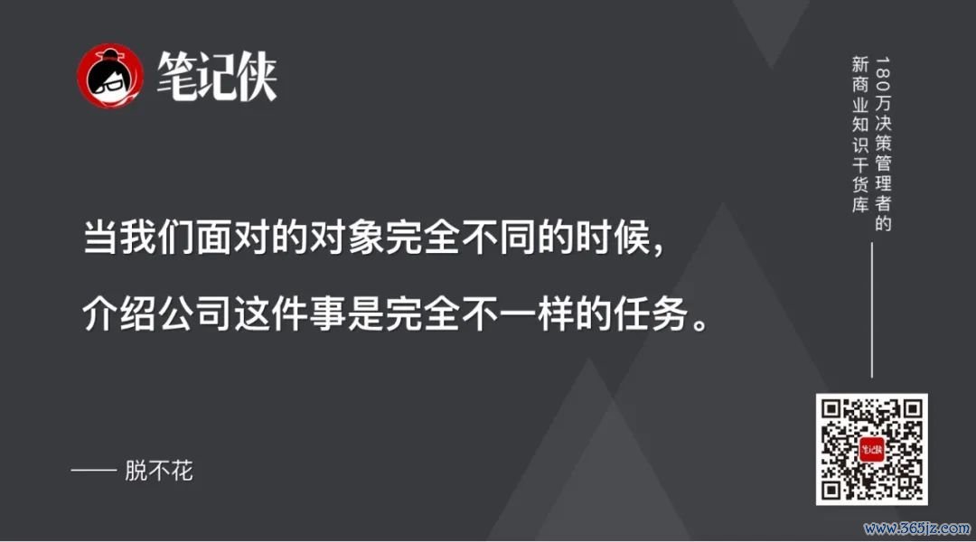 当我们面对的对象完全不同的时候,介绍公司这件事是完全不一样的任务。