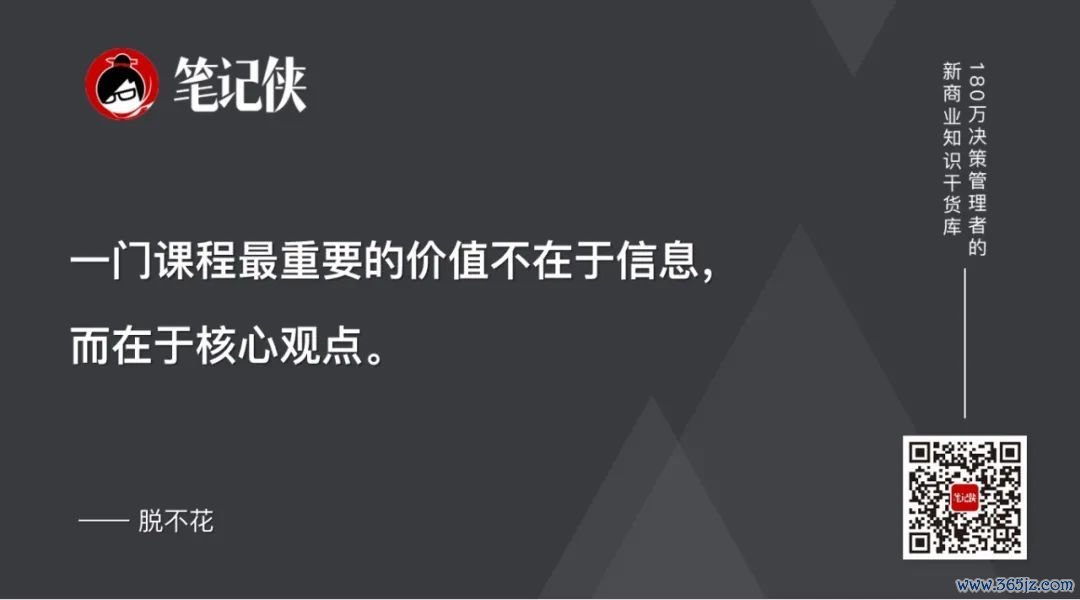 锦囊化之后,我们就可以非常明确地告诉大家:一门课程最重要的价值不在于信息,而在于核心观点。