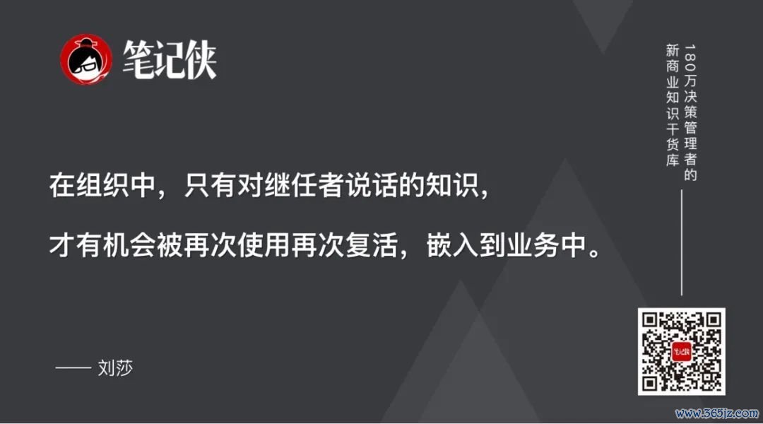 在组织中,只有对继任者说话的知识,才有机会被再次使用再次复活,嵌入到业务中。