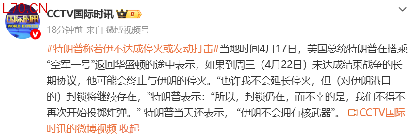 离“最后期限”不到一个半小时 美伊停火协议达成 10日开启新一轮谈判